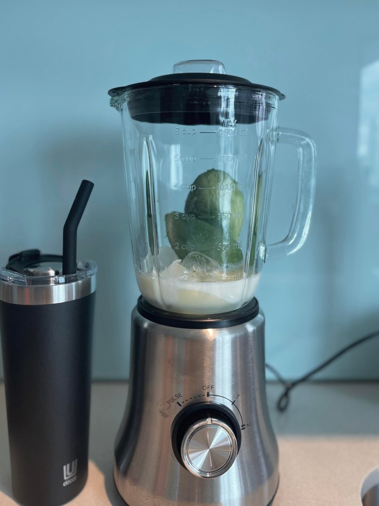 When you think the consistency meets your expectation, pour the avocado smoothie into a glass/smoothie tumbler and enjoy it!