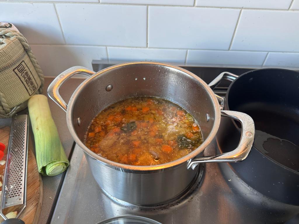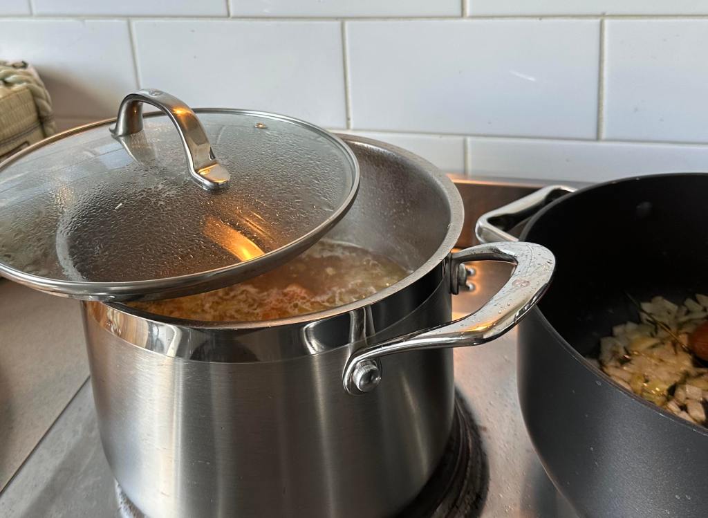 - Add in hot water and reduced your heat to medium.