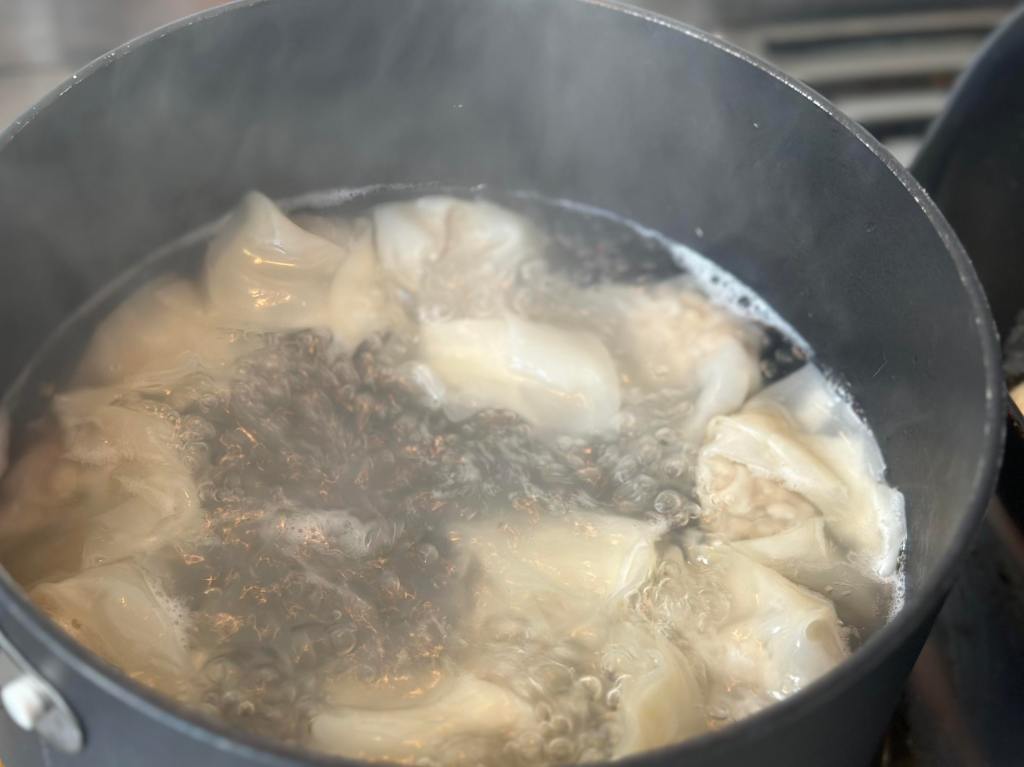 - Boil a pot of water and add in your Kiaws to the boiling pot of water. Boil it for about 7 minutes. You’ll know your dumplings are ready when they start floating.