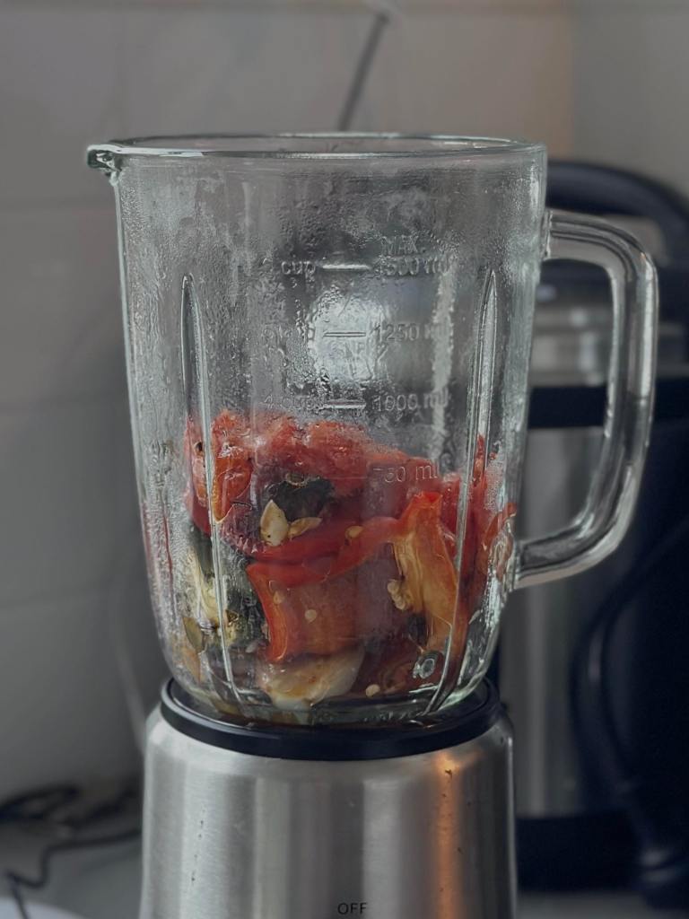 - Once the veges are done, pop them into the blender and blend it till the texture’s smooth. If you feel like the texture is too thick to your liking, add some almond milk or water to even it out.