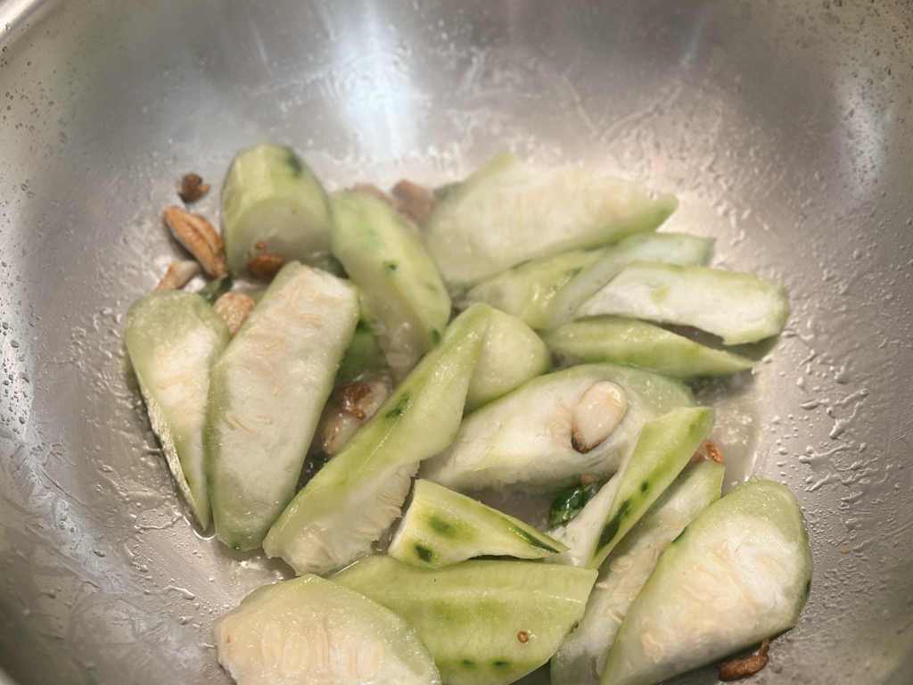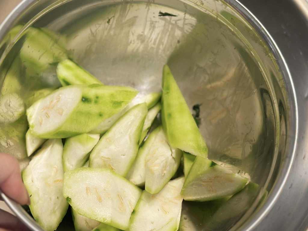 Random fact: To pick a good Chinese loofah, make sure to select the younger ones so it doesn’t taste bitter. Pick up a loofah and shake it a little. Select the loofah that bounces wriggle when you shake it. Don’t choose the loofah that feels as hard as a baseball bat.